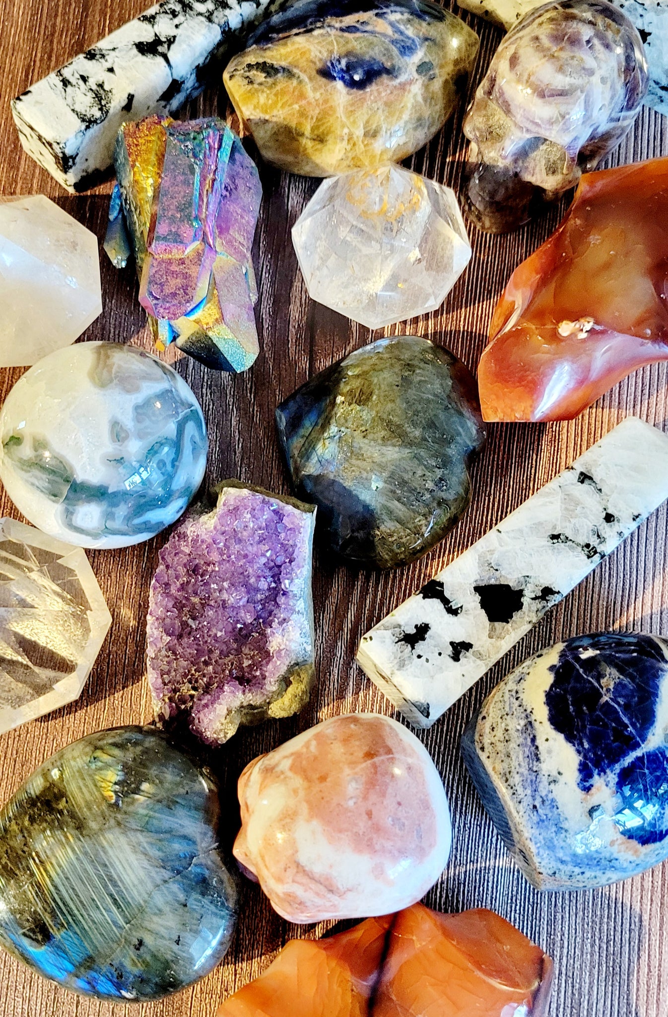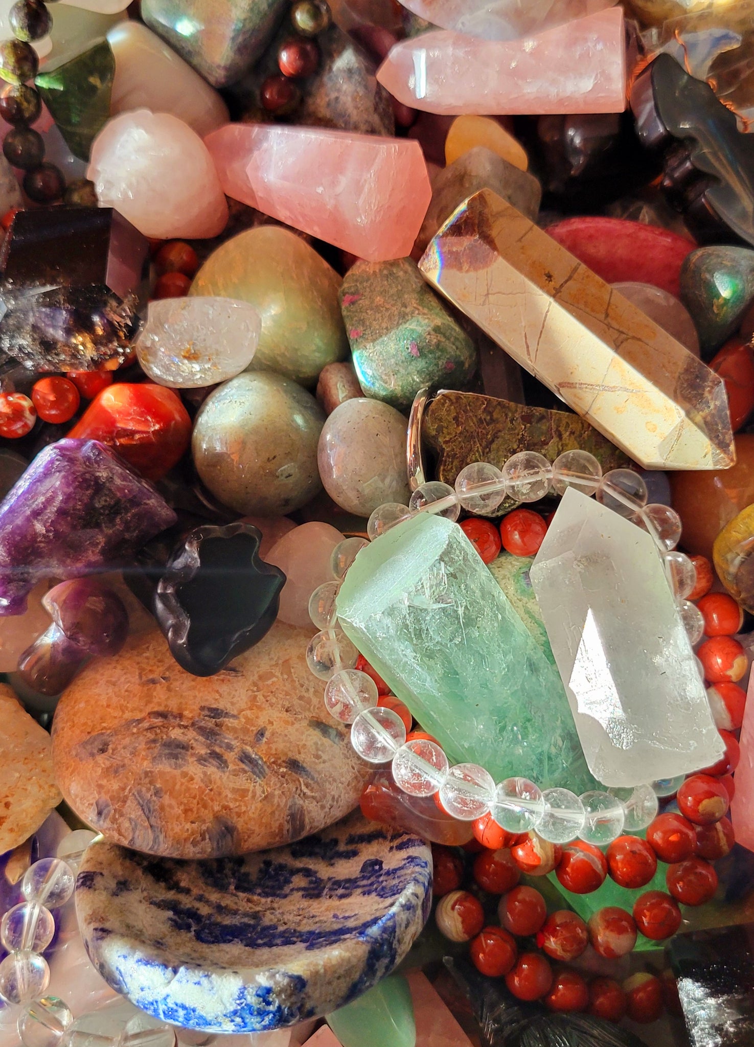 Earth Candy Crystal Scoops is a mish mash of beautiful crystal tumbles, charms, palm stones, and more all brewed together! Earth Candy is sold in small 1/4 cup scoops, or large 3/4 cup scoops at random. If you want multiple scoops, just choose however many scoops you want from the quantity tab.